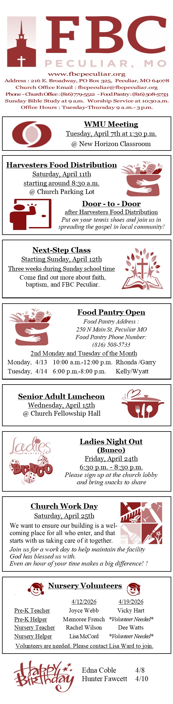 He is risen indeed! What a great resurrection Sunday we enjoyed together as a church. Thank you to everyone that braved the chilly weather for our Sunrise Service. We had a great turnout and a great breakfast together. I also want to give a huge thank you to the choir for blessing us with great musical worship at both our Good Friday service and our Easter Service. They bring much joy and excitement to our worship services. It was great to see faces of extended family but also first time visitors on Sunday. We do an amazing job as a church at helping people to feel welcome and accepted.